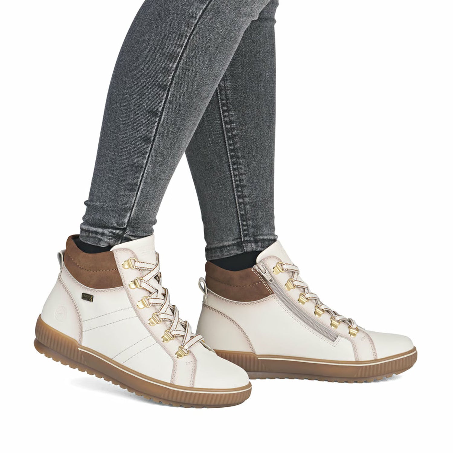 The Remonte lace-up boots offer extra room with a comfort width design. The combination of laces and a zipper makes them easy to wear, while interchangeable laces add versatility. Equipped with a padded, removable insole and flexible sole, they provide cushioning and stability on various surfaces. Featuring remonteTEX technology, these boots are water-repellent and wind-protective, blending style with practical comfort.