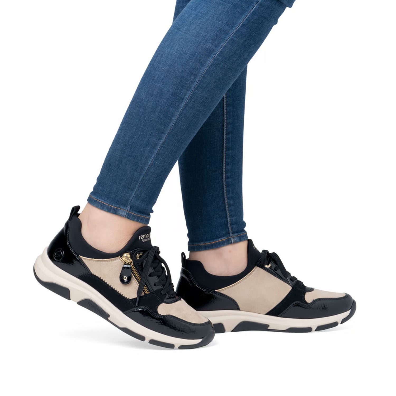 More freedom of movement for your feet! These black Remonte shoes are absolute all around talents! The elastic band makes the shoe easy and comfortable to put on and take off. The padded and removable insole meets a grippy and light sole that superbly balances even hard ground. The model is cut in comfort width that ensures sufficient space for the foot. True to the motto comfort meets style!