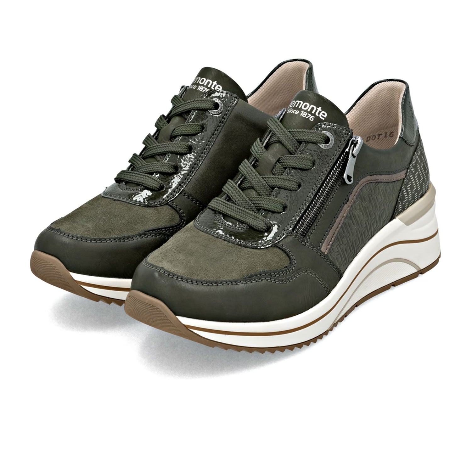 Happy feet, happy life! With these green beige remonte low-top sneakers, coolest style and maximum comfort are guaranteed at every step of the way. Despite the lacing, the shoe can be easily closed by the zipper. The Lite 'n Soft technology with its ultra-light sole and padded and removable insole ensures a comfortable feeling. The extra width gives you more space in the shoe. The sneakers are equipped with a light microvelour lining. That means: endless strolling is no problem at all!