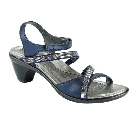 Be the life of the (formal) party with the incredible Naot Innovate Heeled Sandal! This stylish shoe features a hook & loop backstrap and adjustable gore at the center straps for a custom fit. And don't forget the comfy padded front strap! Plus, the rhinestones add serious wow-factor to this standout pick. The anatomic cork and latex footbed is covered in leather and has a microfiber center to stop any sliding, and it molds to your foot as you strut. And the Avantgarde Collection comes with a TPR sole and metal shank that give the look of a 2" heel without the feel. You'll be ready to rock the night away!